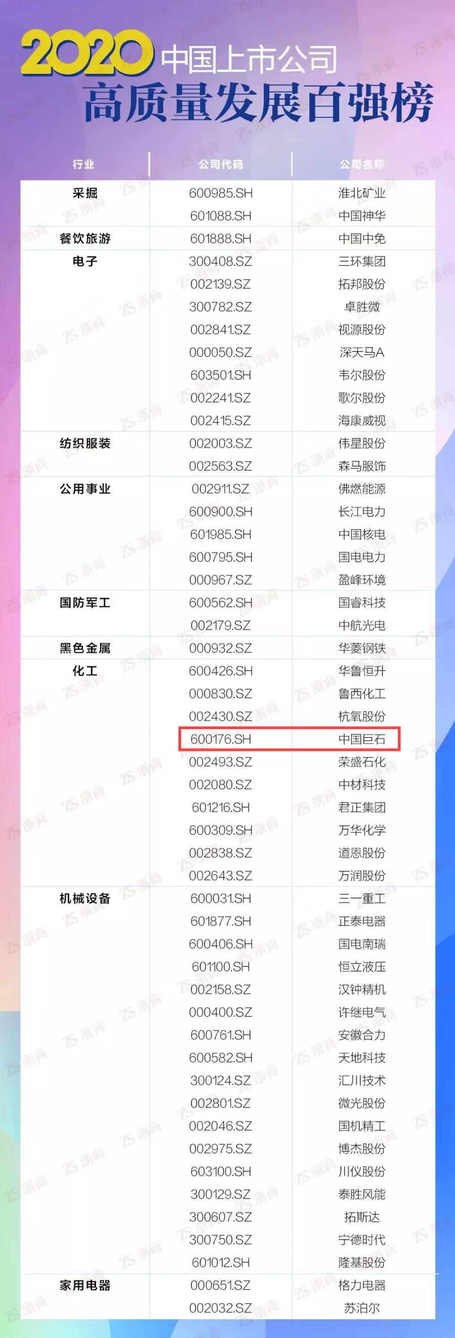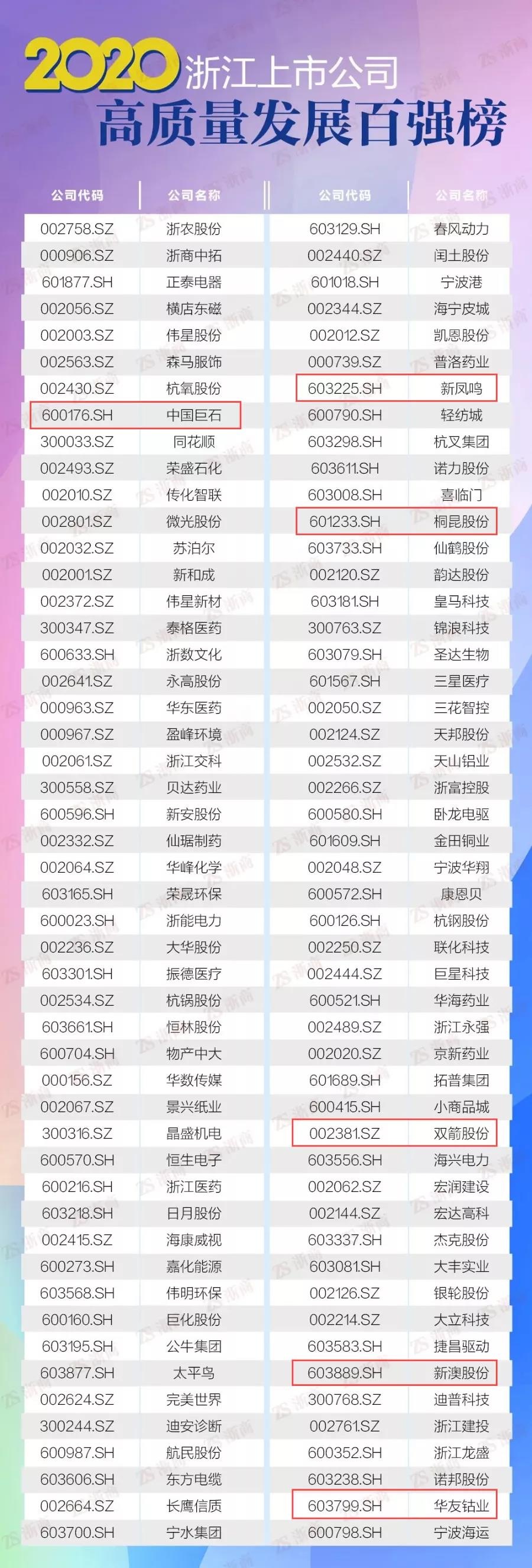 桐鄉(xiāng)市上市公司強勢入圍!其中,中國巨石入圍2020中國上市公司高質(zhì)量發(fā)展百強榜;中國巨石、桐昆股份、新鳳鳴、雙箭股份、新澳股份、華友鈷業(yè)入圍2020浙江上市公司高質(zhì)量發(fā)展百強榜!