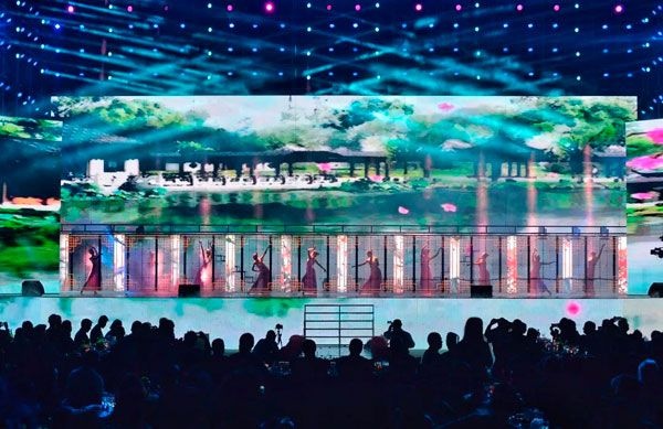 震撼的燈光秀,使人仿佛進入一個璀璨流彩絢麗的時空。首次出現(xiàn)在巨石年會晚會現(xiàn)場的威亞,結合了打鼓和燈光的元素,視覺效果令人眼前一亮。