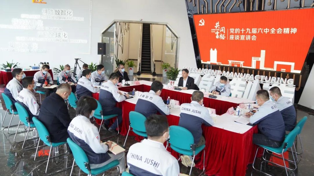桐鄉(xiāng)市委副書記、代市長王堅到中國巨石宣講黨的十九屆六中全會精神
