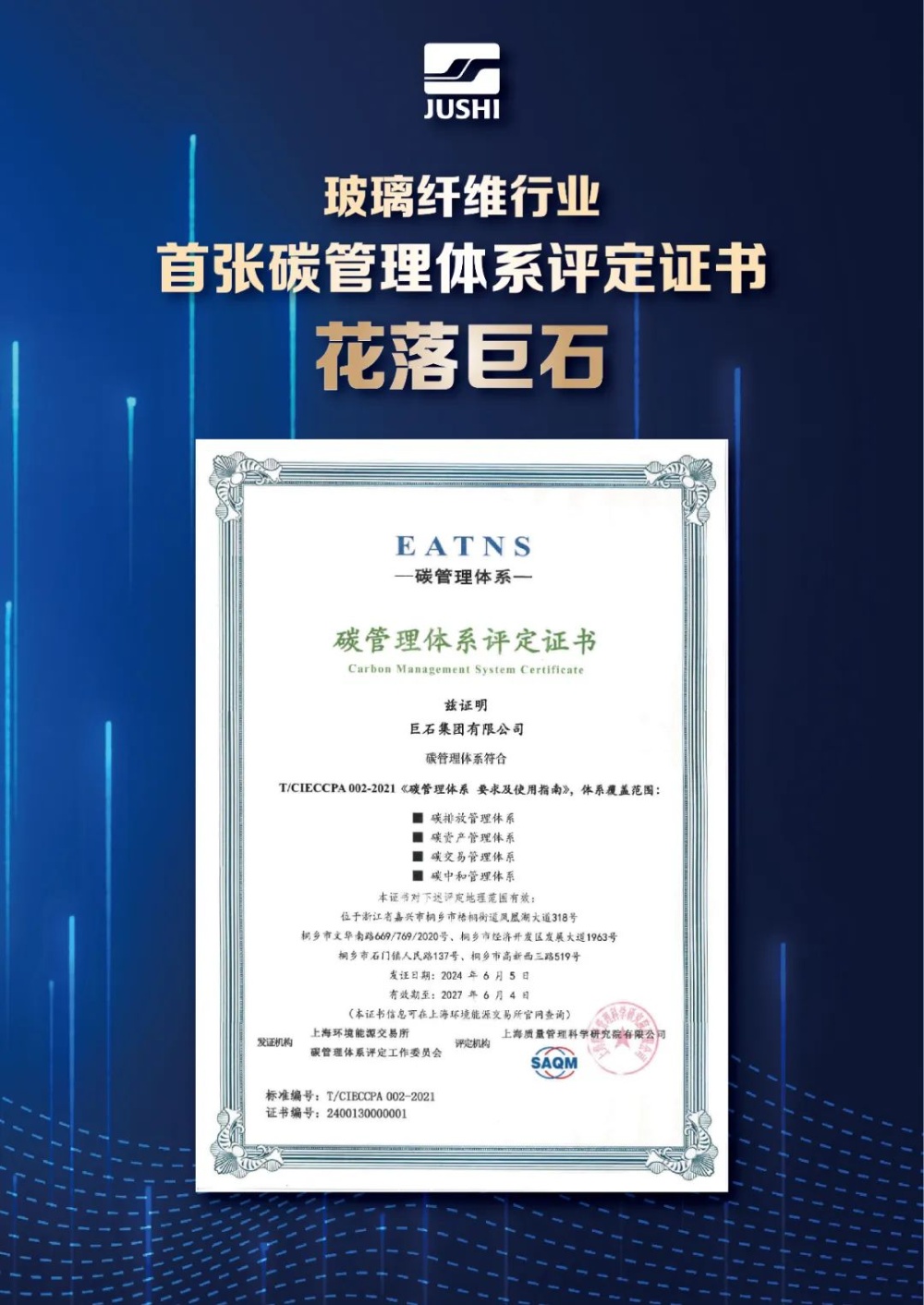 6月5日,第53個(gè)世界環(huán)境日,在上海環(huán)境能源交易所,玻璃纖維行業(yè)首張《碳管理體系評(píng)定證書(shū)》花落巨石。
