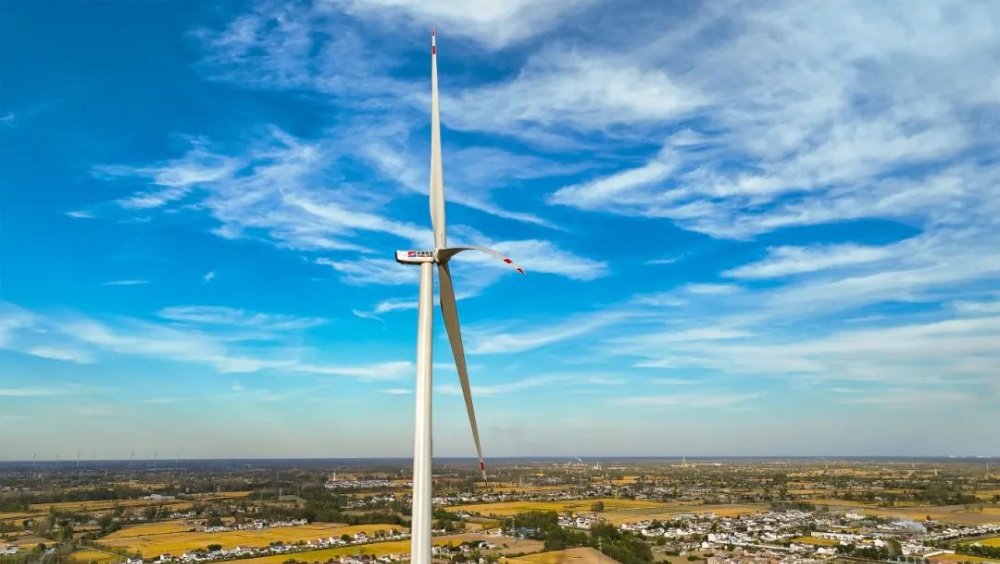 在中國(guó)巨石淮安零碳智能制造基地,一座180多米高的大風(fēng)車迎風(fēng)轉(zhuǎn)動(dòng),源源不斷地將風(fēng)能轉(zhuǎn)化為電能。所發(fā)綠電,一部分被輸送到零碳智能制造基地用于玻纖生產(chǎn),另一部分通過(guò)國(guó)家電網(wǎng)輸送到千家萬(wàn)戶,實(shí)現(xiàn)生產(chǎn)、生活電力供應(yīng)的綠色化。