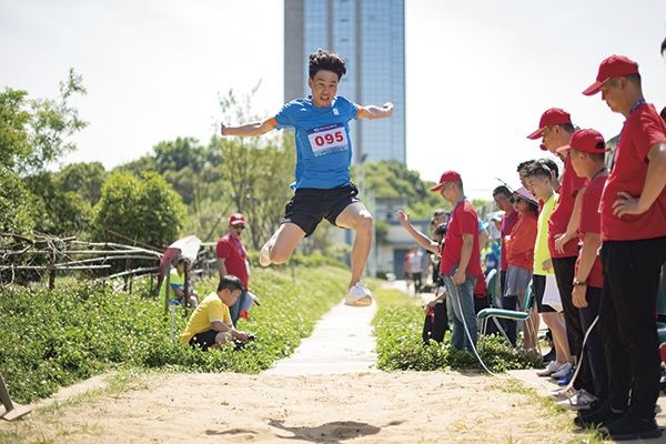 賽場上,100米預(yù)賽的飛人們在跑道上呼嘯而過的身影引得現(xiàn)場發(fā)出一陣陣歡呼與尖叫,實力相近的選手在沖線的那一刻更是讓觀眾無法用肉眼判斷誰先誰后。當(dāng)觀眾們還未從百米飛人大戰(zhàn)的余韻中跳脫出來的時候,跳遠的比賽掀起了當(dāng)天的高潮。3米、4米、5米,選手們一次次刷新著記錄,起身飛躍、黃沙飛揚,來自四分廠的蔣家鳴以5.66米的成績打破了跳遠的記錄,也引得現(xiàn)場無數(shù)的歡呼。