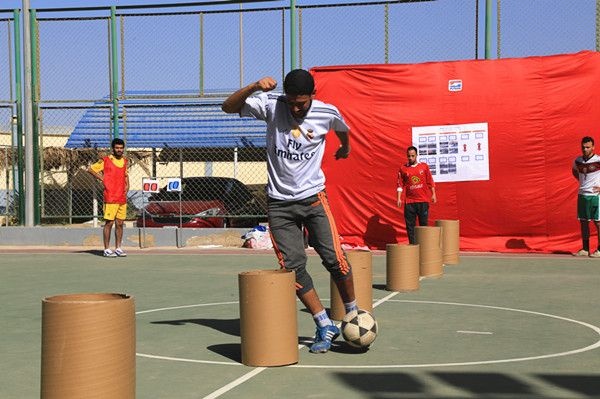 4月21日是決賽的最后一場比賽,由于拉絲車間隊和公用工程隊各勝一場,因此這直接關(guān)系到比賽的最終結(jié)果。正式比賽開始前我們首先開展了顛球大師的趣味賽,拉絲車間Ahmed Abdel Sabour兩分鐘顛球259次,贏得“顛球大師”的稱號。