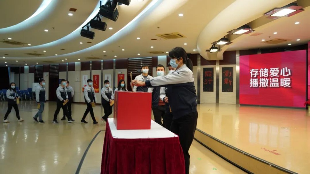活動(dòng)現(xiàn)場(chǎng),公司高管,行政、供銷、研究院分工會(huì)組成的愛心隊(duì)伍秩序井然地將愛心善款投入捐款箱。