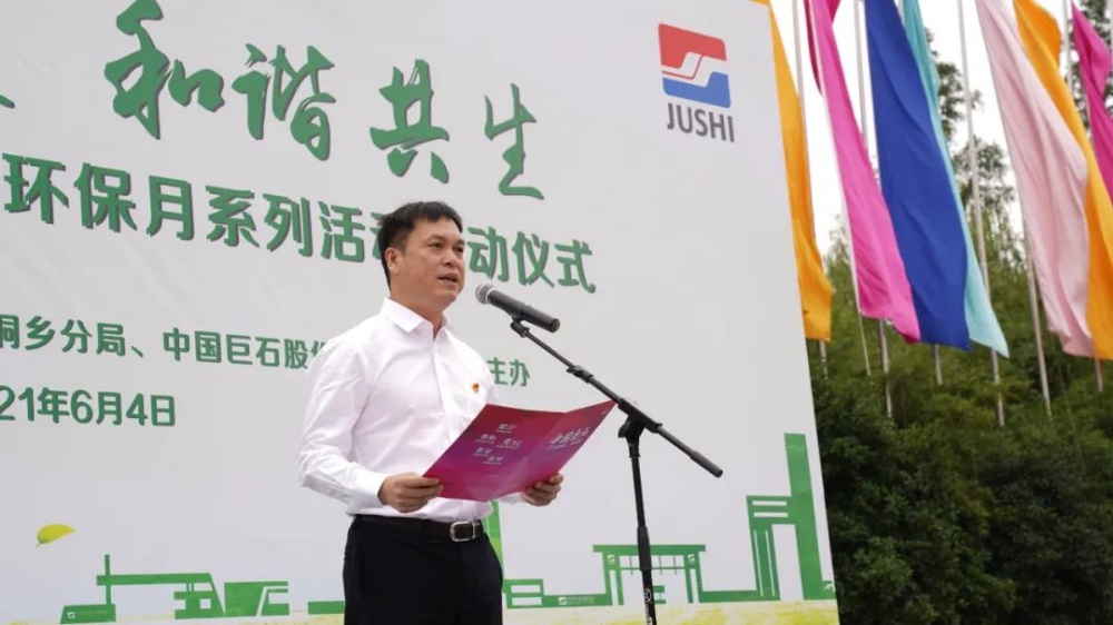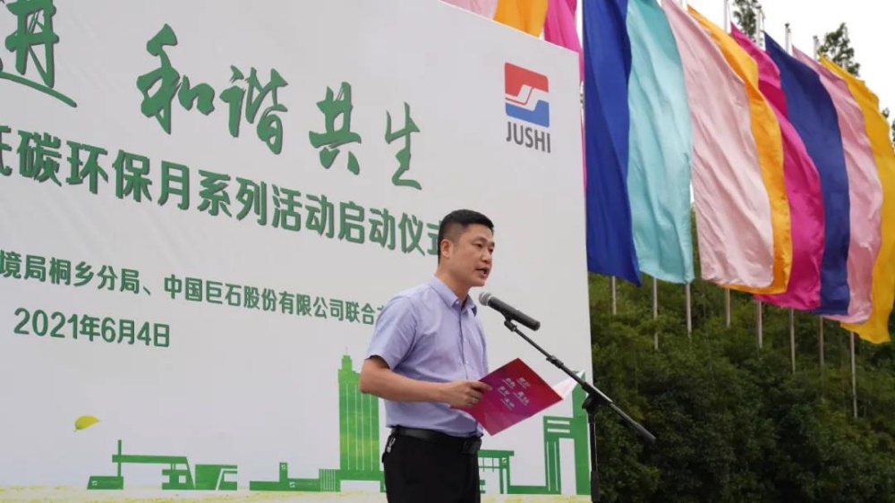 為深入學(xué)習(xí)貫徹習(xí)近平總書記“兩山”理論與“碳達峰、碳中和”的重要講話精神,做大做強巨石綠色品牌,讓每一位巨石人發(fā)揮自己的力量,從身邊小事做起,將低碳環(huán)保工作做到實處。6月4日下午,由桐鄉(xiāng)市美麗辦、嘉興市生態(tài)環(huán)境局桐鄉(xiāng)分局、中國巨石聯(lián)合舉辦的“與石俱進、和諧共生”低碳環(huán)保月系列活動正式啟動。嘉興市生態(tài)環(huán)境局桐鄉(xiāng)分局黨組書記、局長姚偉平,桐鄉(xiāng)經(jīng)濟開發(fā)區(qū)管委會副主任、高橋街道辦事處副主任趙弘毅,中國巨石黨委委員、副總裁,巨石集團副總裁曹國榮,巨石集團工會副主席沈士江參加活動。
