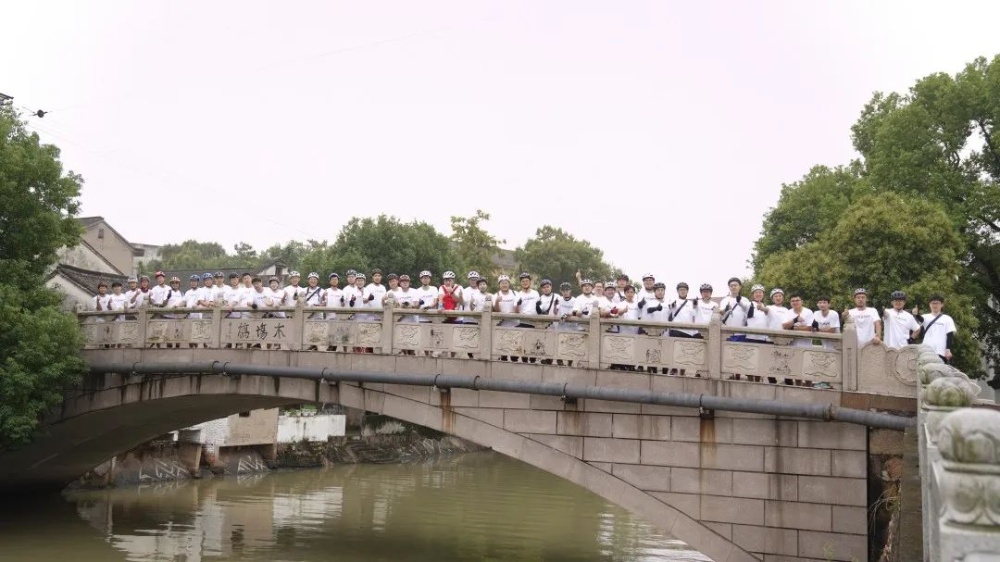 騎行的首站,騎手們尋根溯源,來到豐子愷緣緣堂,這里是東風(fēng)布廠的舊址,是巨石的發(fā)源地,不少老員工回憶起張毓強(qiáng)總裁在木場橋邊帶領(lǐng)巨石崛起的點(diǎn)點(diǎn)滴滴。隨后騎手們穿過地標(biāo)建筑吳越界碑,騎行至石門五分廠稍作休整。