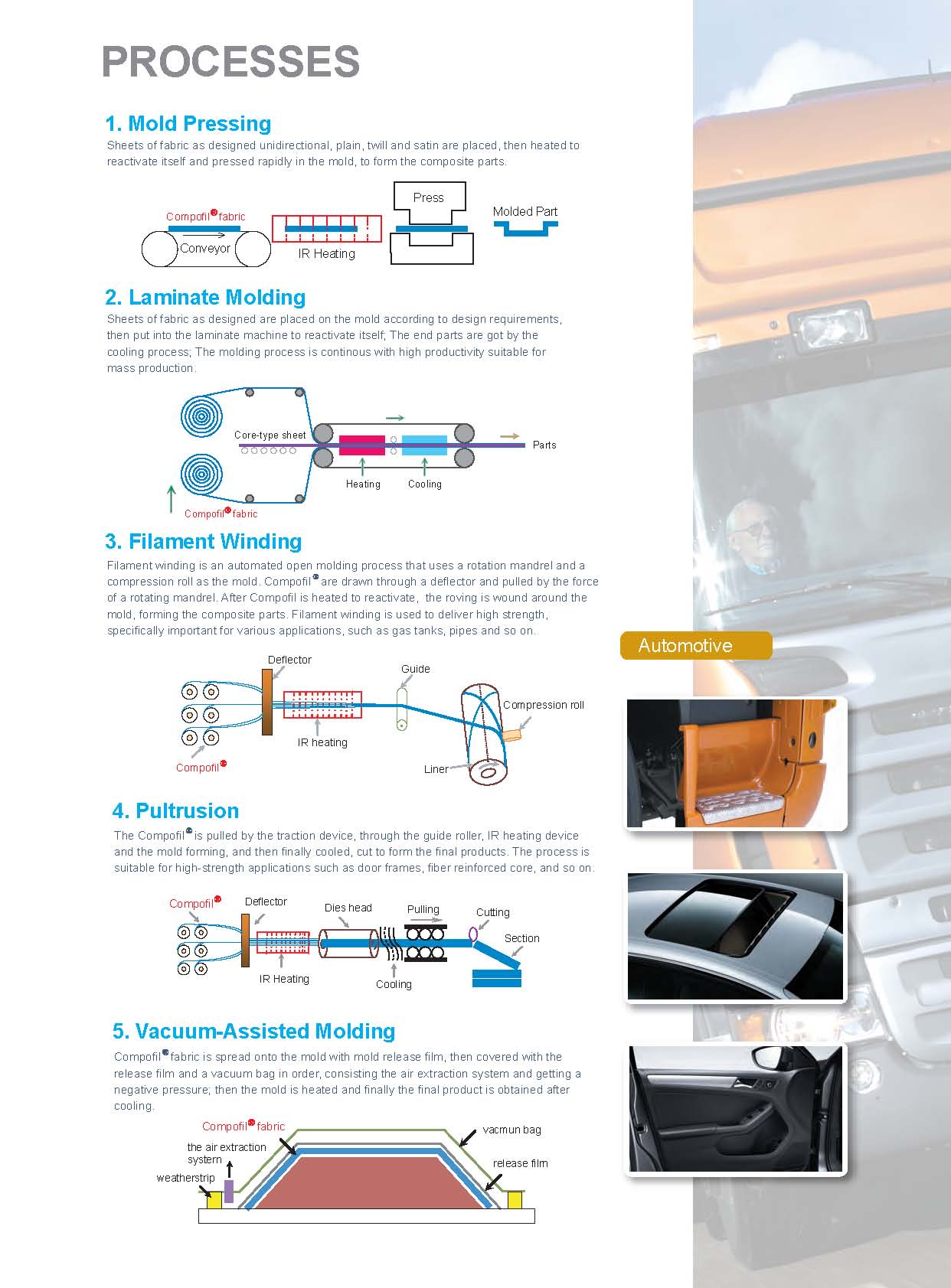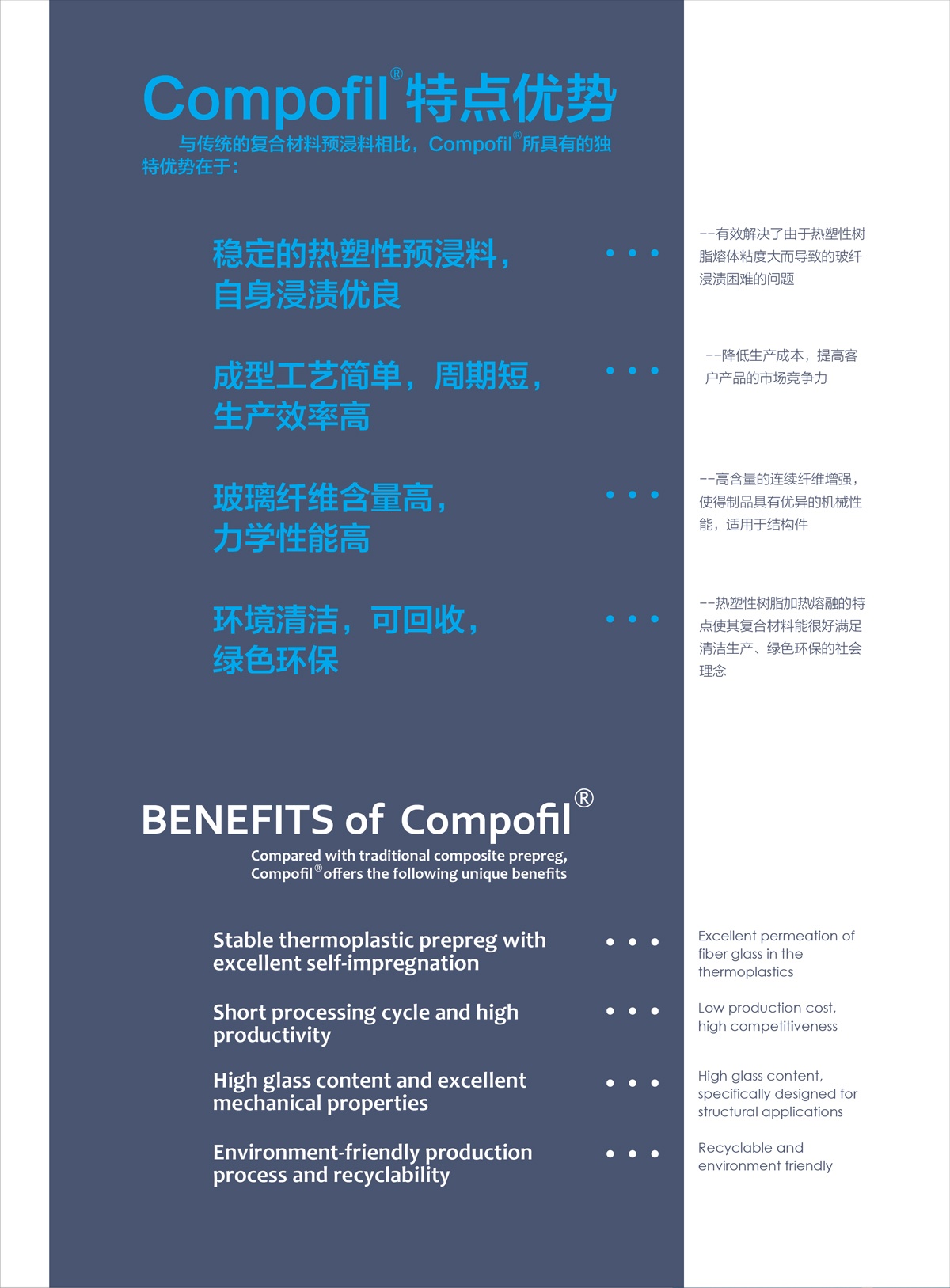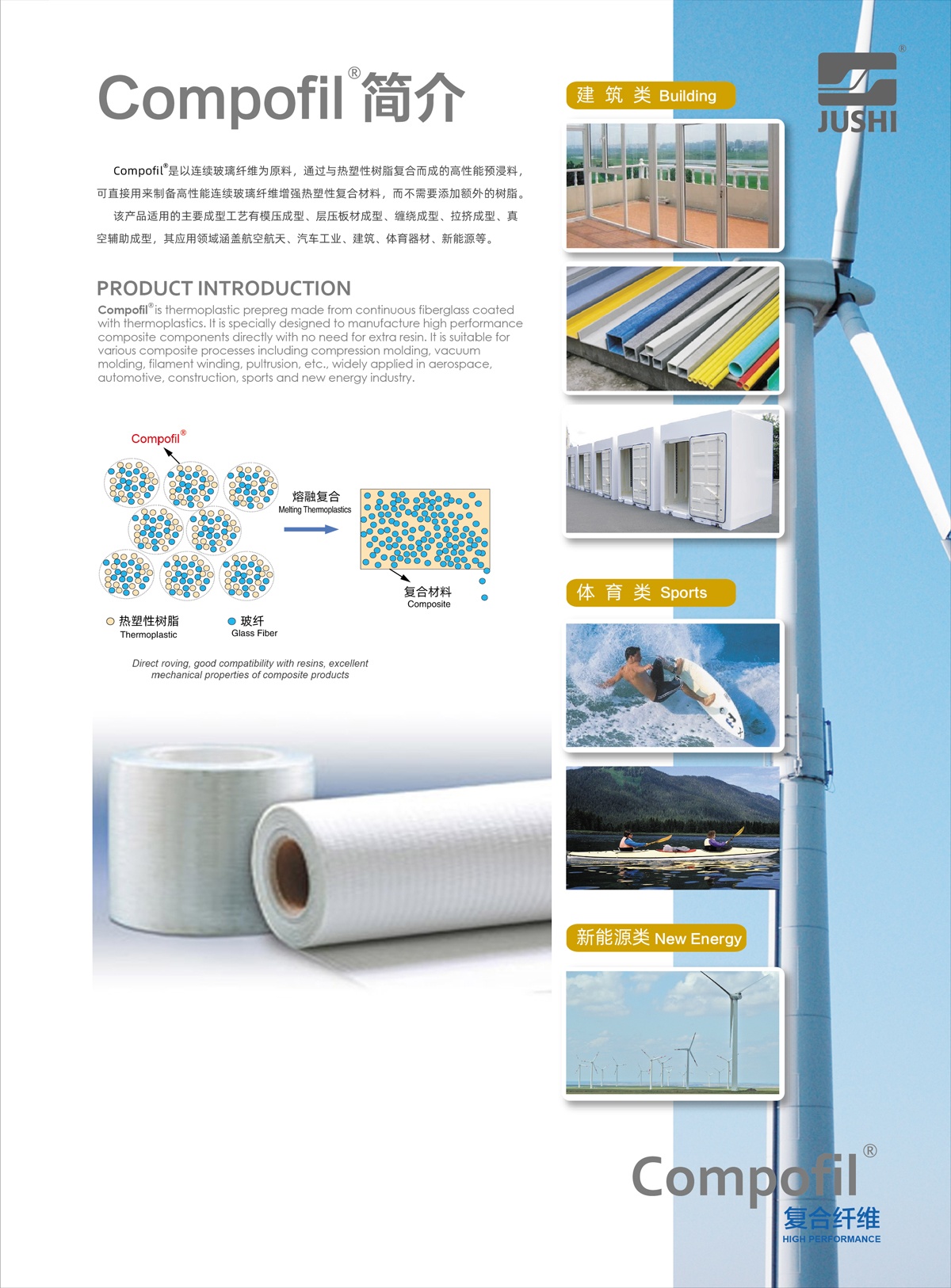Compofil?是以連續(xù)玻璃纖維為原料,通過(guò)與熱塑性樹(shù)脂復(fù)合而成的高性能預(yù)浸料,可直接用來(lái)制備高性能連續(xù)玻璃纖維增強(qiáng)熱塑性復(fù)合材料,而不需要添加額外的樹(shù)脂。